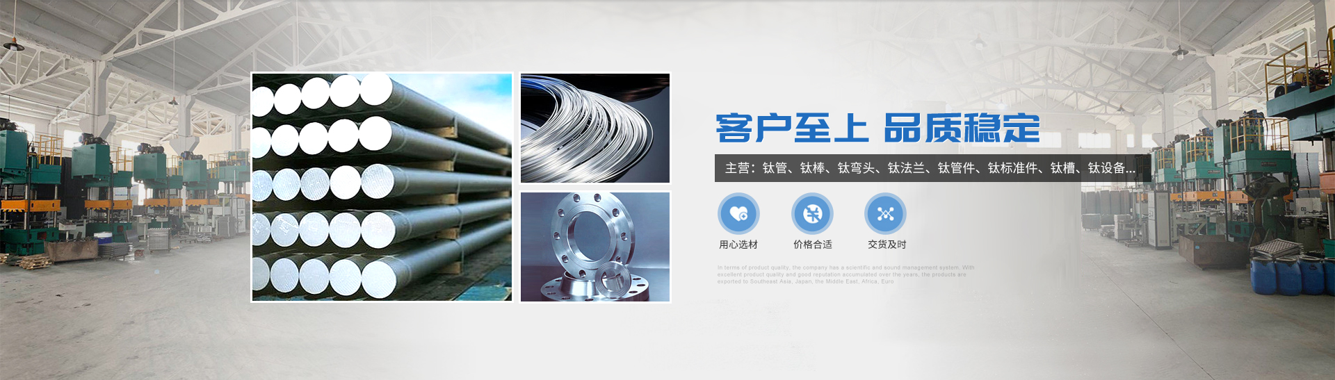 本公司的主营产品钛制品有,钛管,钛棒,钛弯头,钛法兰,钛管件,钛标准件,钛槽,钛设备,钛冲压弯头等